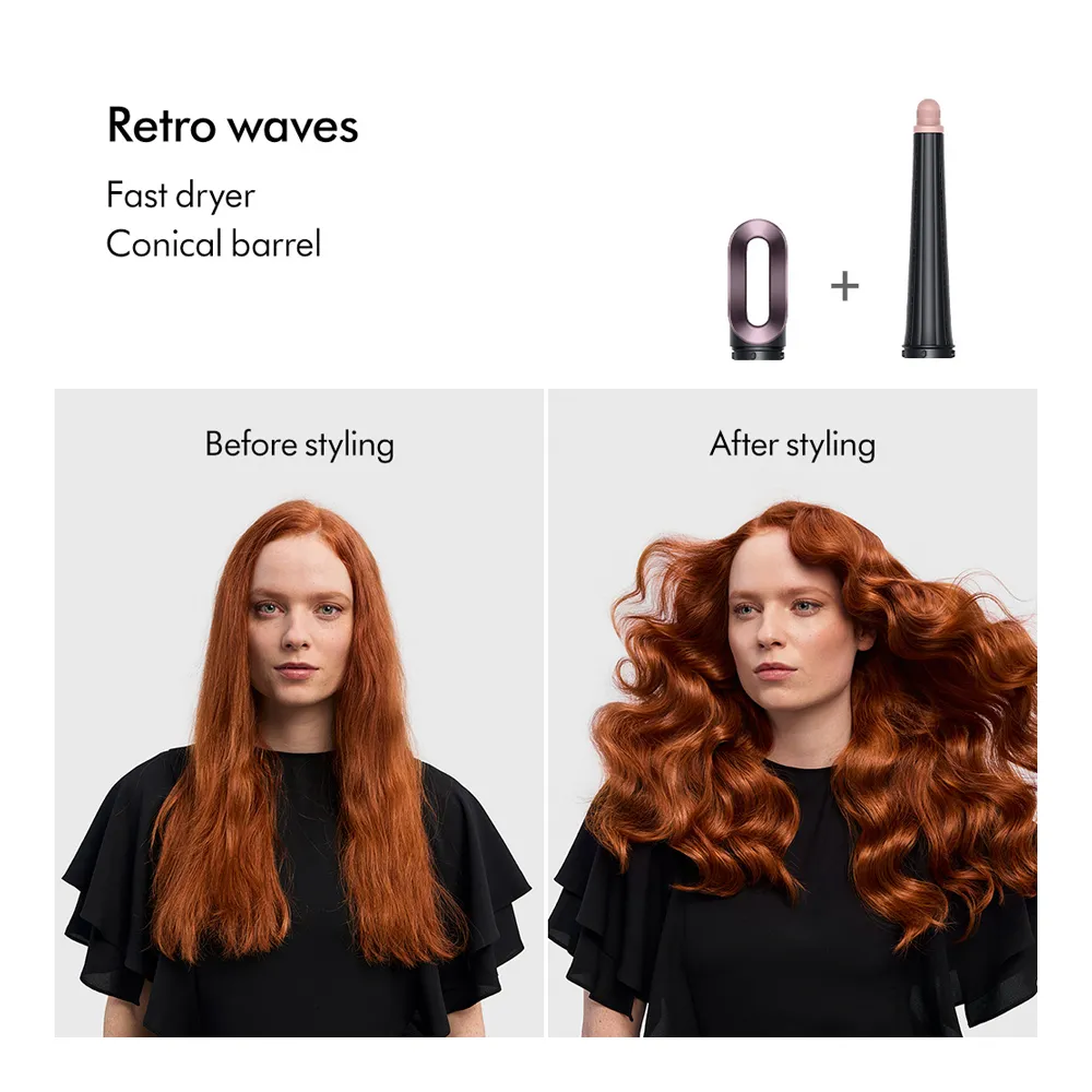 The new Dyson Airwrap i.d. lets you wrap, style, and set your curls at the touch of a button. Automate and personalise your curling sequence with i.d.curl using the MyDyson app. With a range of 6 attachments, you can dry, curl, shape, smooth, and hide flyaways—all with no heat damage. Now featuring the new Conical barrel. The Conical barrel allows you to style close to the roots, creating defined curls throughout your hair and adding volume for bouncy, lifted styles.