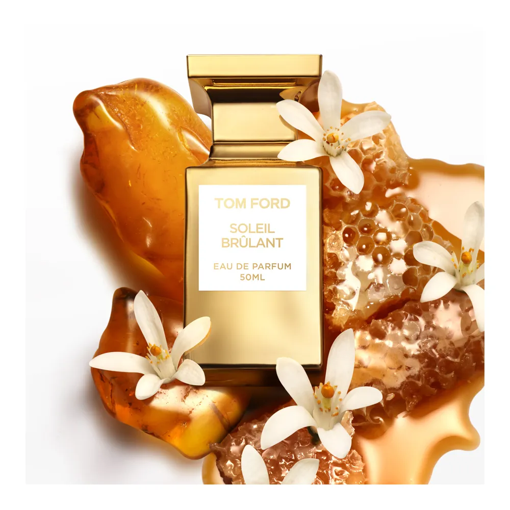 This fragrance captures the high-shine brilliance of the golden sun beaming on a private oasis. Sun-kissed citrus mingles with spices – giving way to an ornate and regal floral heart – while orange flower absolute and black honey release a seductive vapor, melting into the burnished warmth of amber.