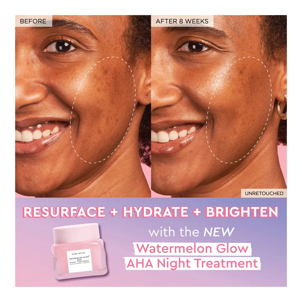 This clinically effective formula, inspired from the original Watermelon Glow Sleeping Mask, resets skin overnight with a concentrated 2.5% pH-balanced AHA complex to exfoliate without irritation, while multi-weight hyaluronic acid, niacinamide, quinoa peptide and watermelon enzymes hydrate, brighten and firm. The AHA Complex is as efficacious as 10% glycolic acid in exfoliating while maintaining the skin barrier while Hyaluronic Acid intensely hydrates the skin layer by layer for plump, bouncy-looking skin and Niacinamide and Quinoa Peptide minimise the look of discolouration while firming and brightening.